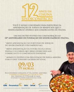 Você é nosso convidado para celebrar os 12 anos do Sindicomércio de Itaúna.