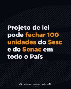 Isso pode causar o fechamento de cerca de 100 unidades do Sesc e do Senac em todo o País, além de outras consequências, como a ausência de serviços e atividades em mais de 100 cidades.